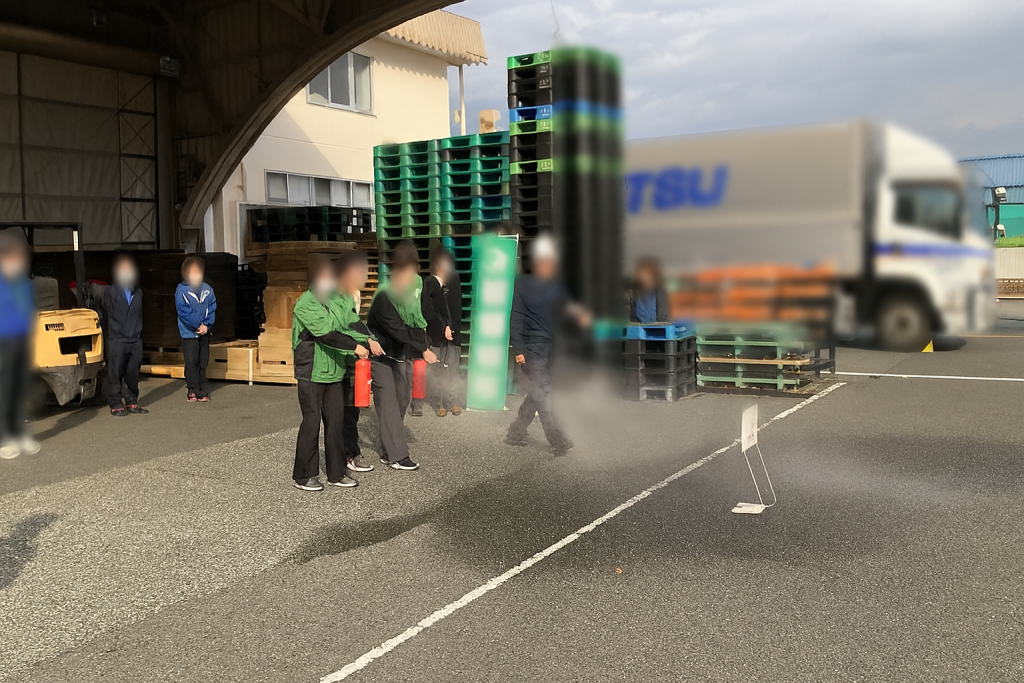 ②水消火器を使っての実演