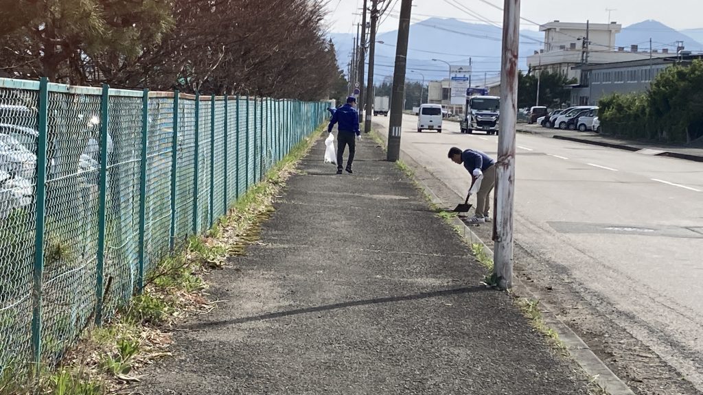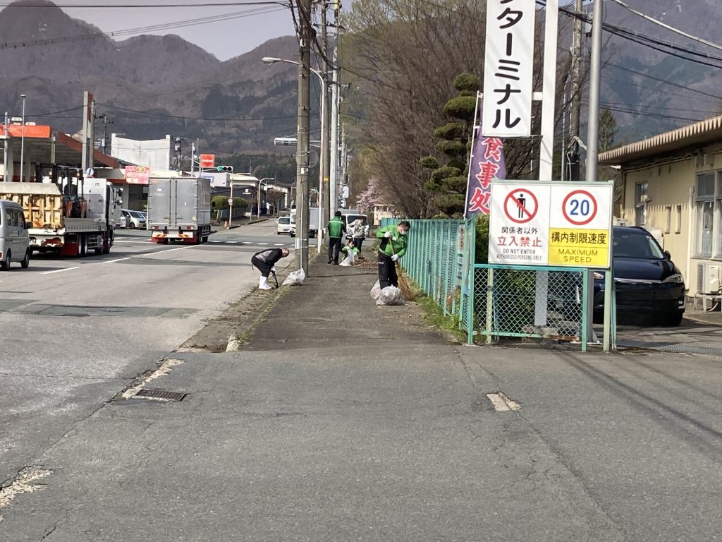 岩手トラックターミナルでは1年に2回のペースで、地域の清掃活動を実施しています。4月14日(火)の朝8時30分から、テナント各社様のご協力で清掃活動を行いました。